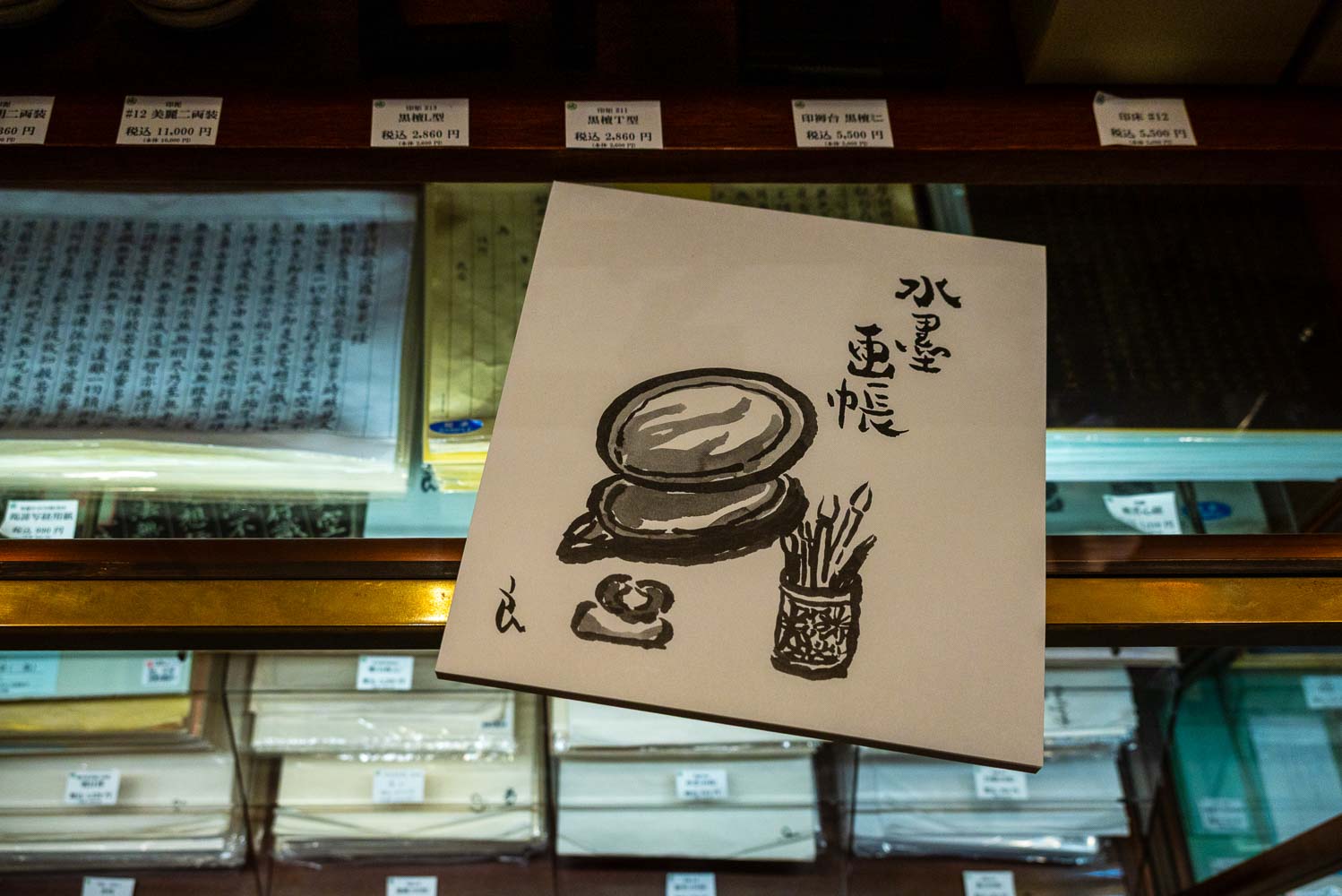 Then, moving to the right, you will find the Japanese calligraphy supplies. Calligraphy, or Shodo (書道) is a practice that was first practiced by court officials in the Heian period, but is often associated with Zen Buddhist schools as well.